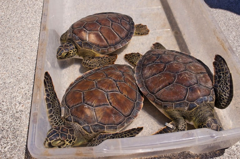 Release of three Turks and Caicos Green Turtles