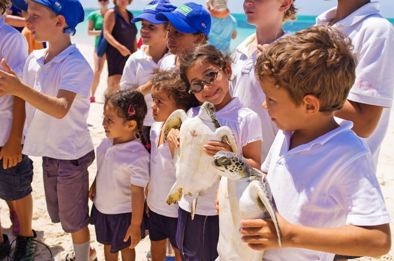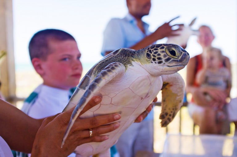 You could see the excitement on the faces of the children as they were allowed to hold the young turtles. Each animal wears a tag on its flipper so it can be identified next time it comes into contact with humans. Then the animals were released to scuttle down the beach into the inviting depths of the ocean.