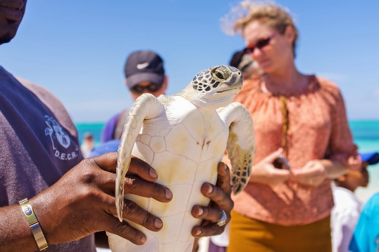 So the UK-based Marine Conservation Society and the Turks & Caicos’ Department of Environmental and Maritime Affairs monitor the population and sometimes release captive-bred turtles back into the wild.